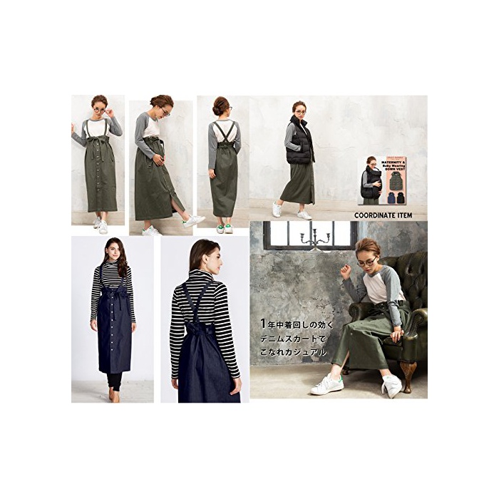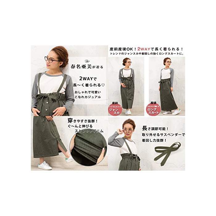 원본상품명: Sweet Mommy 大人カジュアル 2WAY デニムスカ?ト ジャンパ?スカ?ト ロングスカ?ト ストレッチデニム フロントボタン ウエスト調節可能 サスペンダ?付き 春 夏 秋 冬 着回し 産前