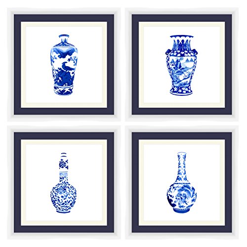 PTM Images 1-20706A Blue Vases Frame, 14 by 14-Inch, White, Set of 4