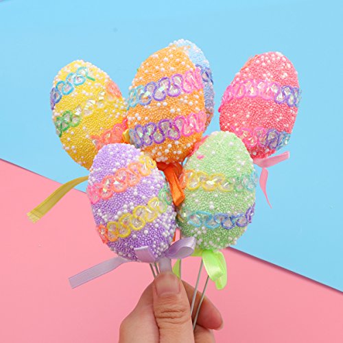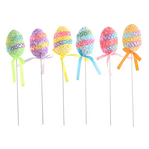-. Title : OULII 6Pcs Colorful Foam Easter Eggs Picks on Sticks for Holiday Home Party Decor (Assorted Color)