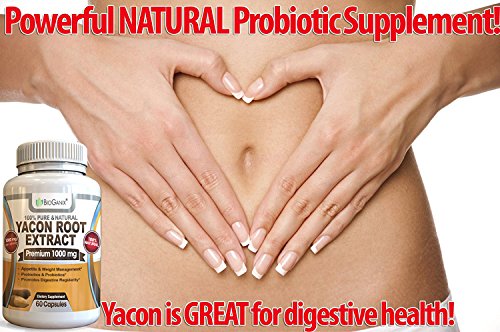 Pure & Natural Yacon Root Extract Premium 1000mg may help boost your metabolism, and kick start your weight loss and health journey! BioGanix's PREMIUM Yacon Syrup formula, in Veggie Capsule form, is high in Fructooligosaccharides (FOS), which have been found to help with healthy weight loss. It's also a natural and safe Prebiotic and Probiotic supplement for digestive regularity, and has numerous other health benefits.