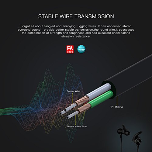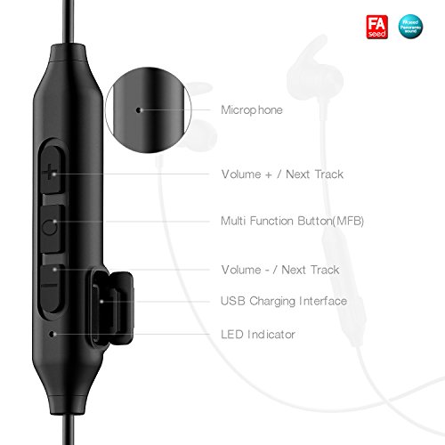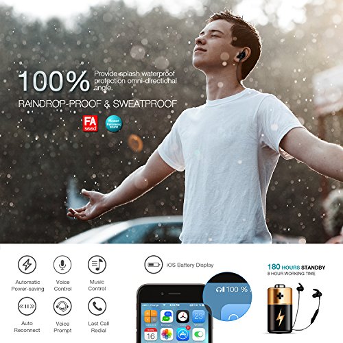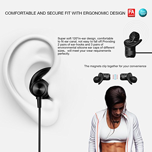 -. Feature : GREAT SOUND QUALITY: If you want high definition sound, get the FASEED wireless earphones and you won't regret it. Featuring the latest Bluetooth 4.1 CSR technology and state of the art acoustic components, the wireless headset produces incredible sound quality with deep bass and crystal clear treble. Also, thanks to the CVC 6.0 technology, you will have 360 degree omnidirectional noise reduction / COMFORTABLE AND STURDY: The earbuds of the wireless headphones are unbelievably comfortable and very secure in your ear. Based on ear engineering, the earphone hooks hold your earbuds in place during rigorous workout,we provide 3 pairs of ear caps of different sizes and 3 earphone hooks to meet your wear requirements. For this reason, at least one of these pairs will feel as if it was designed just for your ear! Try them and see for yourself. / NO MORE TANGLED WIRES: Forget all about tangled and annoying ting wires. The FASEED Bluetooth headphones are wireless and they can sync to any devices up to 10m away. It can also connect to two devices simultaneously! The magnets clip together for your convenience.You can now go running, jogging, working out and driving without having to deal with any wires and devices. / LONG LASTING BATTERY: The wireless Bluetooth earbuds have a rechargeable, low consumption battery. You can use them for up to 8 hours straight or leave them on standby for 180 hours before their battery runs out. So use them for as much as you want! And don't worry about the Bluetooth. Its radiation is low and much greener and safer for children and pregnant women than regular headsets and phone devices. / SATISFACTION GUARANTEE: Your satisfaction is very important to us. That's why we have backed up for wireless headphones with a 1-year manufacturer's warranty and a 30-day return policy. This means that if the in-ear headphones have some kind of a malfunction, for the first year we will be more than happy to repair it or replace it. As for the first 30 days since the purchase, you have the right to ask for a refund.