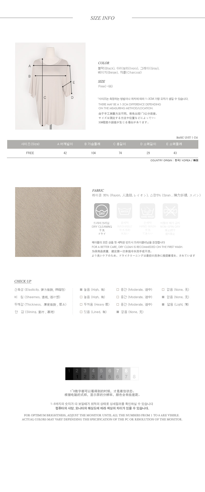 넉넉한 핏감으로 누구든지 편안한 착용감을 선사해드리는 베이직한 티셔츠 아이템이예요^^베이직하고 깔끔한 디자인으로 어떠한 팬츠,스커트와도 부담없이 즐길 수 있는티셔츠 아이템이랍니다~우수한 텐션감과 실키한 소재로 기분좋은 착용감까지 느낄 수 있어요~적당한 길이감으로 계절에 구애없이 레이어드룩으로도 즐길 수 있는 티셔츠 아이템을 적극 추천해드려요~