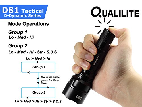 Qualilite D81 CREE XP-L HI White or Neutral White 1000 Lumens 2 Groups of 3 to 5-Mode LED Flashlight uses of 1x18650 or 2xCR123