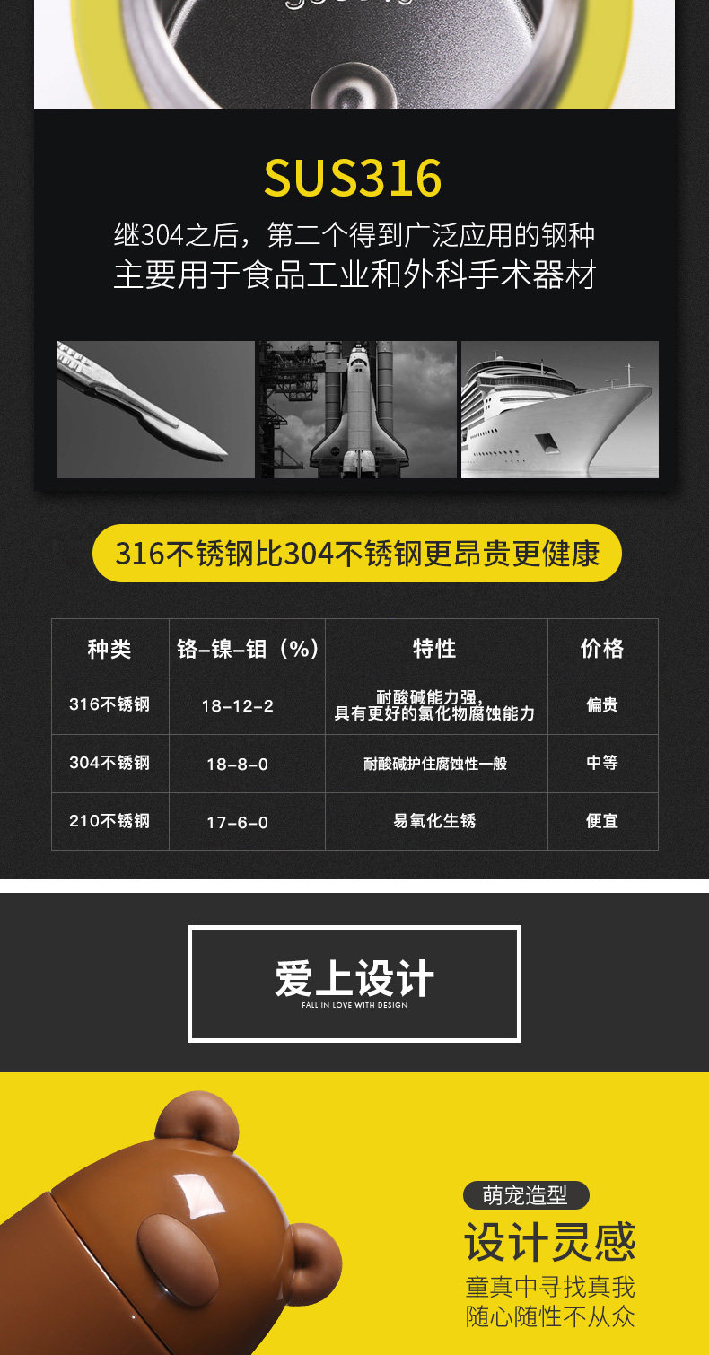 保温杯女学生可爱水杯儿童迷你便携316不锈钢时尚创意茶杯子