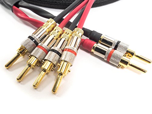 -. Title : Canare 4S11 Bi-Wire Speaker Cable (2 Bananas to 4 Bananas) in Black Techflex with Locking Banana Plugs - 6 Feet