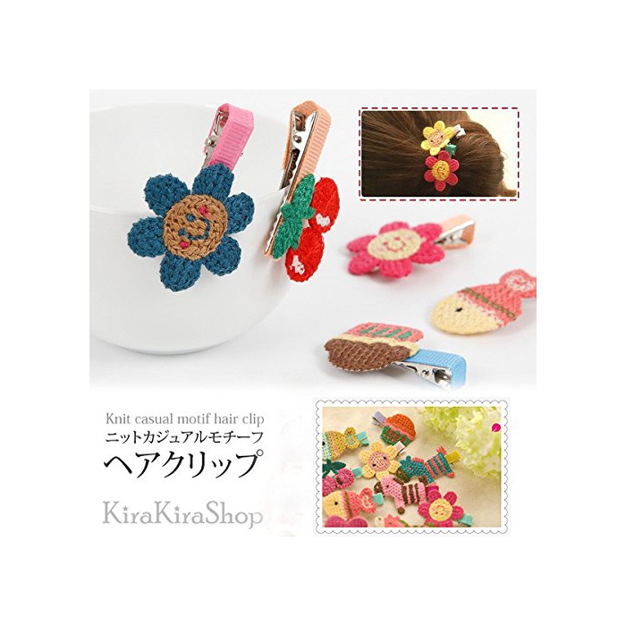 친절한 키모《지》가 되어라 것 같은 법짝 니트 소재의 모티브 헤어 클립◎