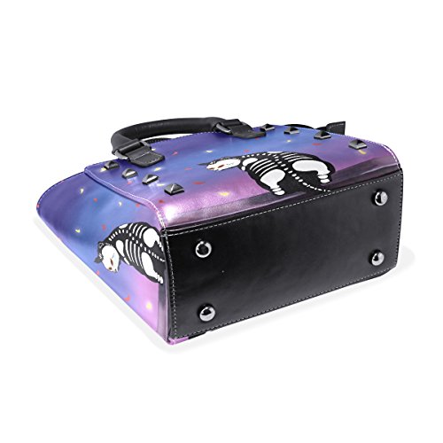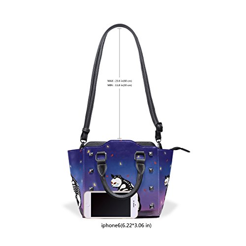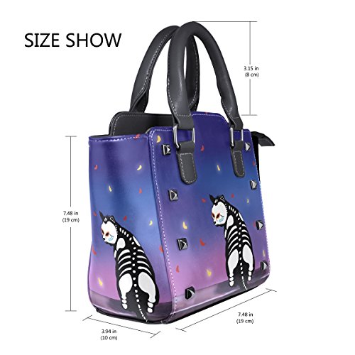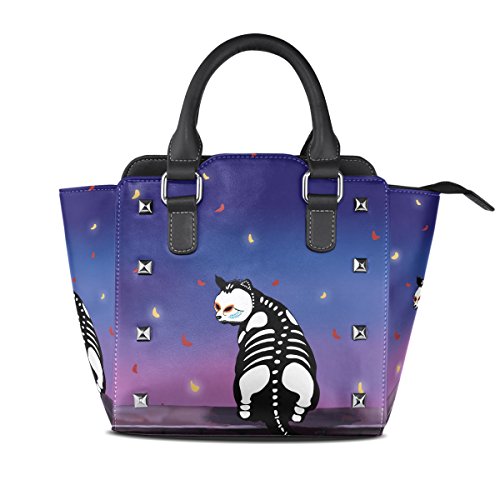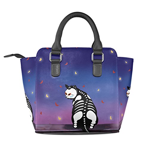 ALAZA Leather Satchel Cat Skull Night Tote Shoulder Bag Cross Body Handbags