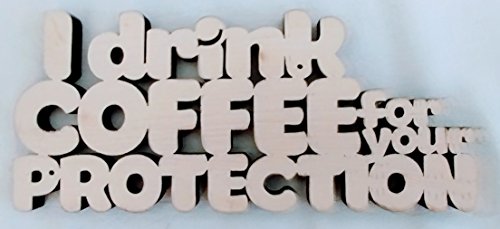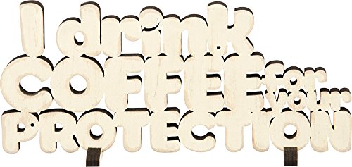 I Drink Coffee for Your Protection Word Art Sign is 9x4 and made of high quality wood and vintage design elements.