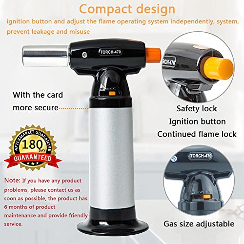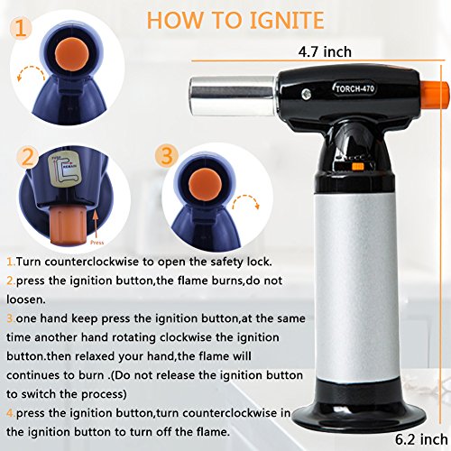 COOKING IN SAFETY : Forget all those cheaply made culinary torches that would break and stop working after a while and trust your cooking fever on this wonderfully constructed food torch blazer. Made from high quality materials and bearing a locking mechanism we can assure you that cooking has never been that safe and easy before!