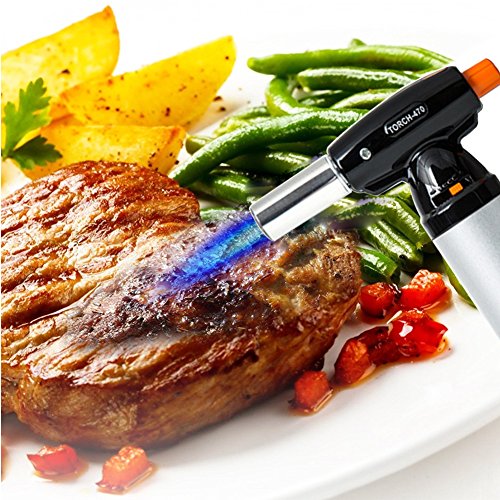 CULINARY TORCH : Used by professional chefs and home cook. Perfect for caramelizes sugar on crème brûlée, brown meringue, searing meat, roasting peppers, glazing baked ham, melting cheese.