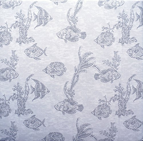 - Summer pattern, with light gray fish swimming amongst sea weed on an off-white / very light gray background