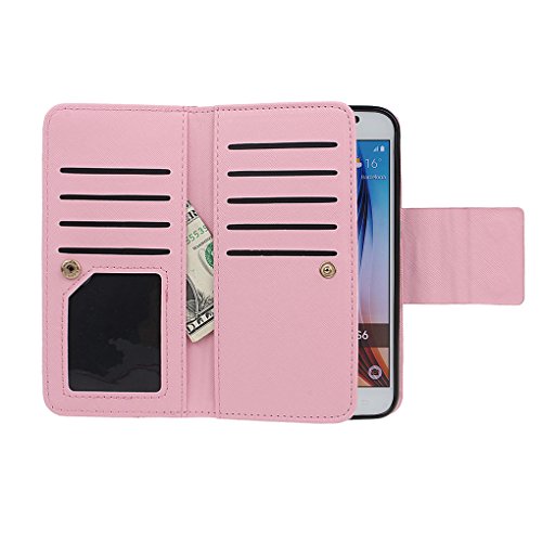 Samsung S6 Case, xhorizon TM FLK Premium Leather Folio Case [Wallet] [Magnetic Detachable] Wristlet Purse Flip Multiple Card Slots Bird Case Cover for Samsung Galaxy S6 G9200 (Rose)