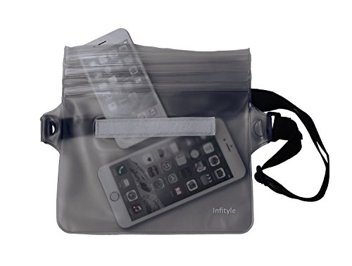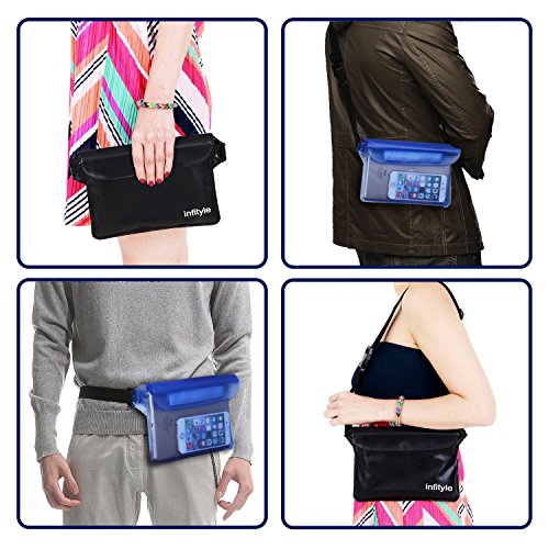 -. Feature : 100% WATERPROOF PROTECTION - You can play confidently and happily with water without worrying your items get wet. Infityle waterproof pouch is specially designed with Double zip-lock seal with additional velcro flap for a watertight closure to ensure your items are 100% protected and it's very convenient to open or close the seal. Never worry about drowning your expensive tablet or Smartphone! / BIG SPACE AND MULTIPURPOSE: Small enough to wear around your waist comfortably, yet also big enough (max 5.9*8.65 in) to hold even an iPad Mini. Just throw in your phone, cash, passport, credit card and more (devices are not included in package), and you'll never have to deal with the limited space again! / ADJUSTABLE COMFORTABLE WAIST BELT : We made sure our fully adjustable carrying straps fit you comfortably as a waist pack (fits sizes: 33.5"-47.5"), cross-body bag, or shoulder bag. Sturdy. Secure. Stylish. Your essentials will always be at your side - on land and in water. / SELECTED WITH Bundled: Two water proof phone bag fits & works superbly with all large and small smart phones with waterproofing quality you can depend on. NOW it is for promotion / 100% FREE TRIAL! -Order now and if you dislike it within 90 days, we will buy back from you, 100% RISK FREE! You have nothing to lose or risk by testing out our products! You CAN'T beat this deal anywhere else! What are you waiting for?