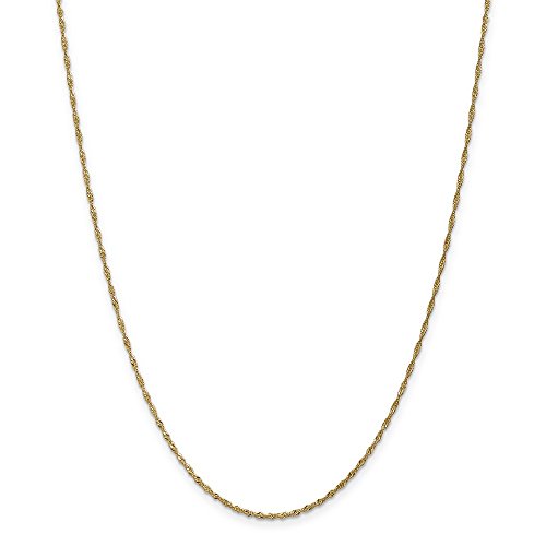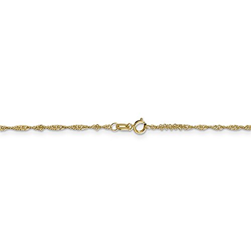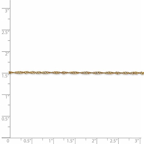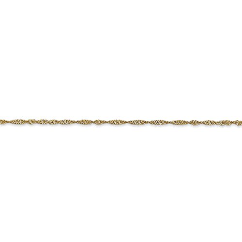 14k Gold 1.6mm Singapore Chain Anklet - 9 Inch - Spring Ring - 1.0 Grams in 14k Yellow Gold - Product Attributes: - Solid - Polished - Spring Ring - JewelryWeb Style: QTA50221Y - FREE gift-ready jewelry boxFeature