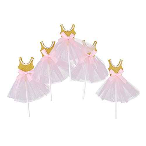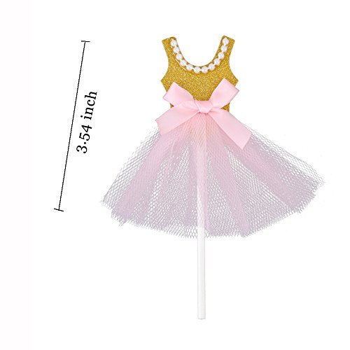 -. Title : Looching 10pcs Lovely P.R.Incess Skirt Gold Pink Pearl Ballerina Cake Toppers-Ideal For Decoration