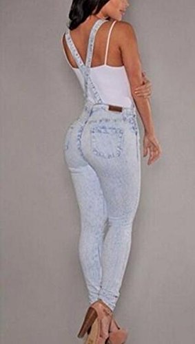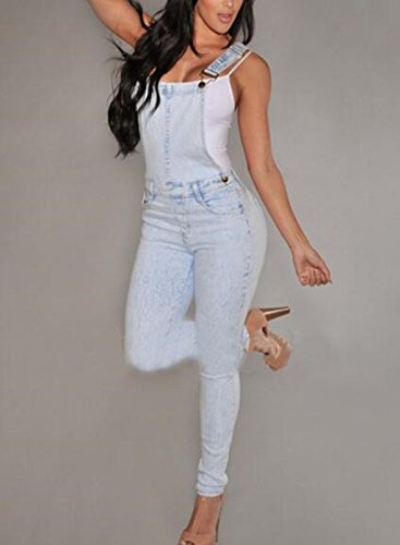 【FASHION STYLE】 - Stunning sexy light blue jumpsuit overalls feature adjustable strap with buttons decorated that you can choose how loose or tight you what it to be, funtional four-pocket styling are both attractive and practical to keep any little items, skinny tight through knee which perfectly show your S-shape curve, high waisted and belt loops design