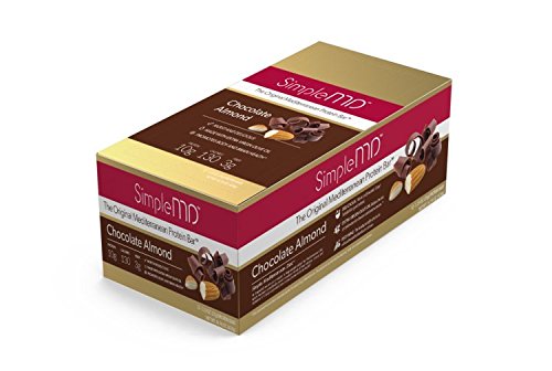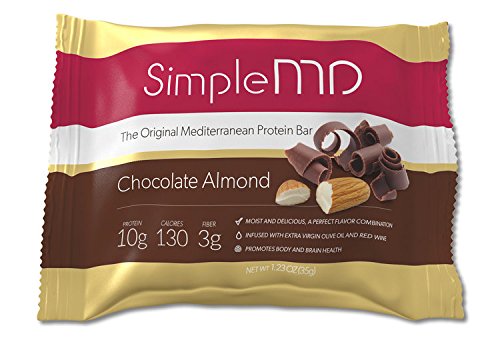SimpleMD Chocolate Almond Mediterranean Bars, High Protein, Low Carb, Gluten-Free, w/ Red Wine and Olive Oil (12 Pack)