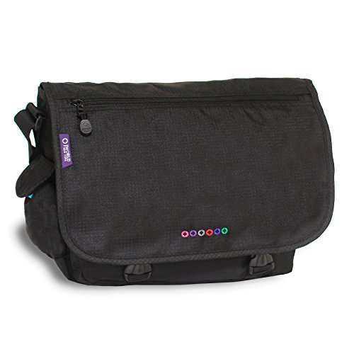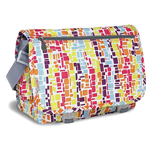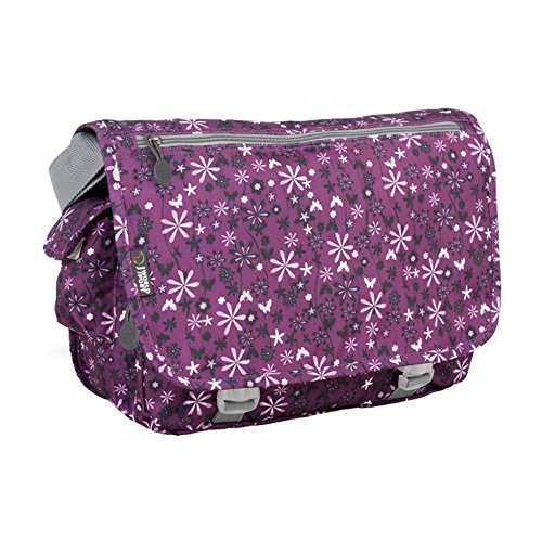 J World New York terry messenger bag comes in a variety of prints that will allow you to keep all of the belongings you need while looking very fashion forward. The terry model comes with an adjustable shoulder strap that attaches to both sides. The front opens up with a double release buckle and for the main compartment there is a zipper closure. The front pocket is an organizer that fits your pens, pencils and credit cards.Feature