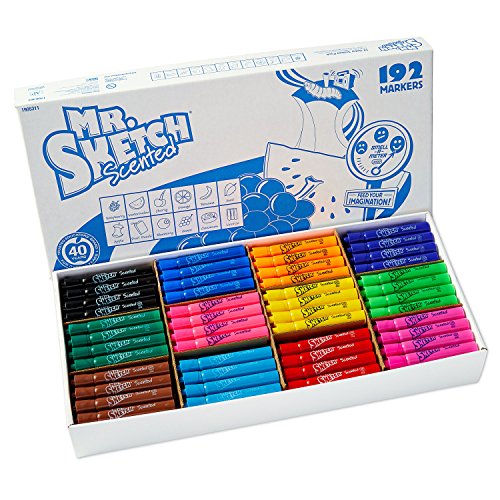 Studio : Cell Distributors Publisher : Cell Distributors Binding : Office Product Product Description Unleash your classroom’s imagination into a world of cinnamon scented giraffes and orange coated airplanes with Mr. Sketch Scented Markers. The captivating aromas and vibrant colors are sure to inspire creativity. The scented markers feature a thick barrel that’s easy for kids to grip and a versatile chisel tip that delivers three line widths. That means buddying artists can confidently pivot between a precision point and bold strokes. So gather around the table and let the scents inspire your classroom’s creations. 0