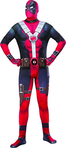 -. Binding : Apparel -. Brand : Rubie's -. ClothingSize : One Size -. Color : multi-colored -. Department : mens -. Feature : 2nd Skin Bodysuit costume / See-through, breathe-through face covering / Note: 2nd skin costumes are designed for a snug fit, be sure to review the Rubie's 2nd skin size chart when selecting a size and consider buying the next size up if you are at the top of a size range / Officially licensed Deadpool costume, buy with confidence direct from Amazon / Rubie's offers licensed character costumes and accessories in sizes and styles for the entire family -. Genre : Skinsuits -. IsAdultProduct : 0 -. Label : Rubies Costumes - Apparel -. Manufacturer : Rubies Costumes - Apparel -. Model : 810982 -. MPN : R810982 -. PackageQuantity : 1 -. PartNumber : R810982 -. ProductGroup : Apparel -. ProductTypeName : ADULT_COSTUME -. Publisher : Rubies Costumes - Apparel -. Size : One Size -. Studio : Rubies Costumes - Apparel -. Title : Rubie's Men's Deadpool 2nd Skin Costume
