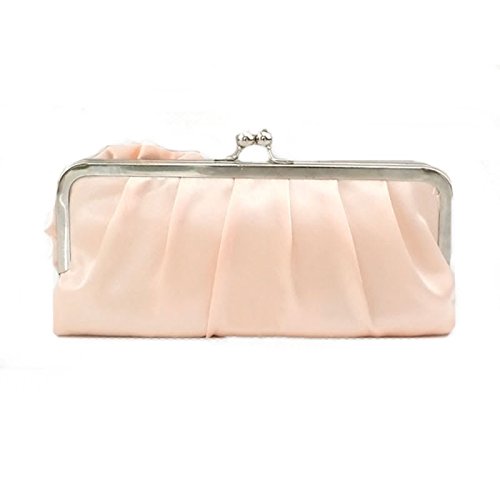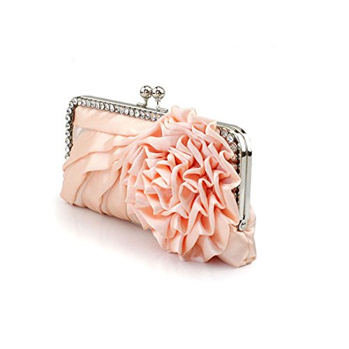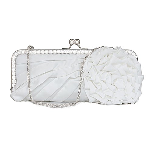 -. Title : Womens Silk Pleated Satin Evening Handbag Floral Flower Clutch Bag with Rhinestone for Wedding Prom Party