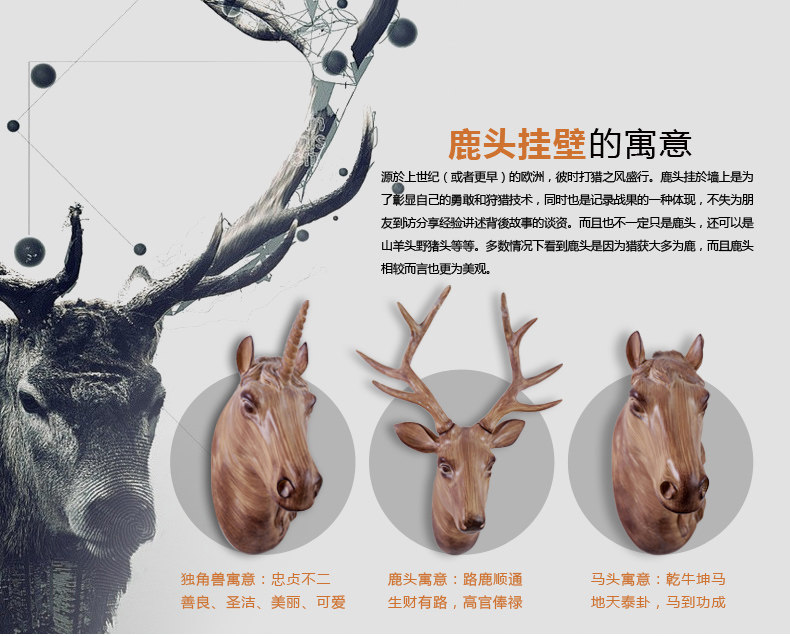 欧式卧室房间墙壁墙饰创意北欧鹿头壁挂墙面软装饰品家居墙上挂件