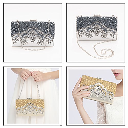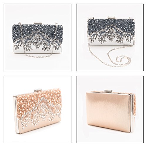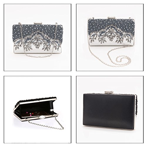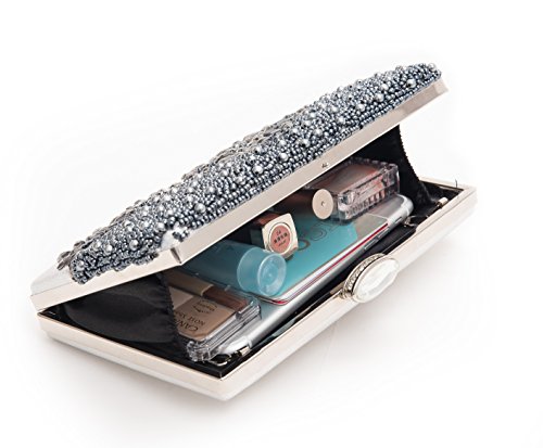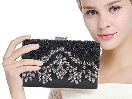 -. Feature : ●DECENT: fit all outfit and occasions / ●DIMENSION: 8.07"(L)4.7"(H)1.4"(W), fit iphone 7 plus / ●VERSTILE STYLE: use it as handbag, purse or crossbody / ●SUITED OCCASIONS: wedding, prom, evening party, shopping, dating etc / ●FASHION BEAUTY: crystal clasp stunned with rhinestone, exquisite flower design and beaded front with shining crystal