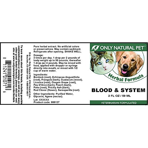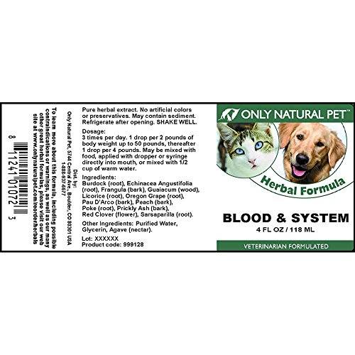 -. Binding : Misc. -. Brand : Only Natural Pet -. Feature : For Pet Type(s): Dogs & Cats / Completely Natural / ApproP.R.Iate for all ages and breeds -. Label : Only Natural Pet -. Manufacturer : Only Natural Pet -. MPN : 999042 -. NumberOfItems : 1 -. PackageQuantity : 1 -. PartNumber : 999042 -. ProductGroup : Pet Products -. ProductTypeName : PET_SUPPLIES -. Publisher : Only Natural Pet -. Studio : Only Natural Pet -. Title : Only Natural Pet Blood & System Herbal Formula