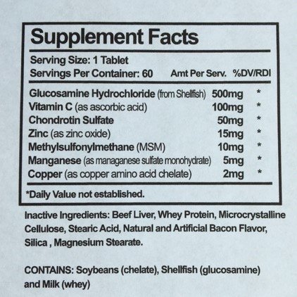 Love your pet and help him or her lead a fun, active life! With FGA products your dog will Feel Good Again! FGA Joint Health Supplements contain a proprietary combination of natural ingredients to promote joint health and happiness for your canine loved ones. This proven formula reduces inflammation and supports natural health and pain relief. Pain meds may treat symptoms temporarily but cannot improve joint health, and they may also have dangerous side effects. Treat the core issue, not just the symptoms, with this natural, safe and effective treat. - Glucosamine & Chondroitin work to repair joint cartilage and reduce inflammation - MSM supports healing of damaged tissues and prevents inflammation - Vitamin C stimulates collagen production necessary for healthy joints - Zinc, Manganese and Copper assist in keeping the immune system and cell division running smoothly, activating enzymes needed for digestion and optimum utilization of food and nutrients. Made in the USA in a GMP compliant facility, using premium quality natural ingredients. If you're not satisfied for any reason, contact us within 90 days for a hassle-free refund. Our goal is to make sure you and your furry friends are completely happy! Order now to help your dog live an active life, free of joint pain. Your dog can Feel Good Again with FGA!!Feature