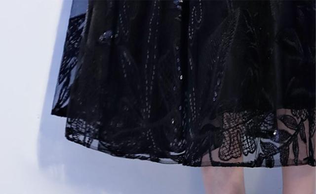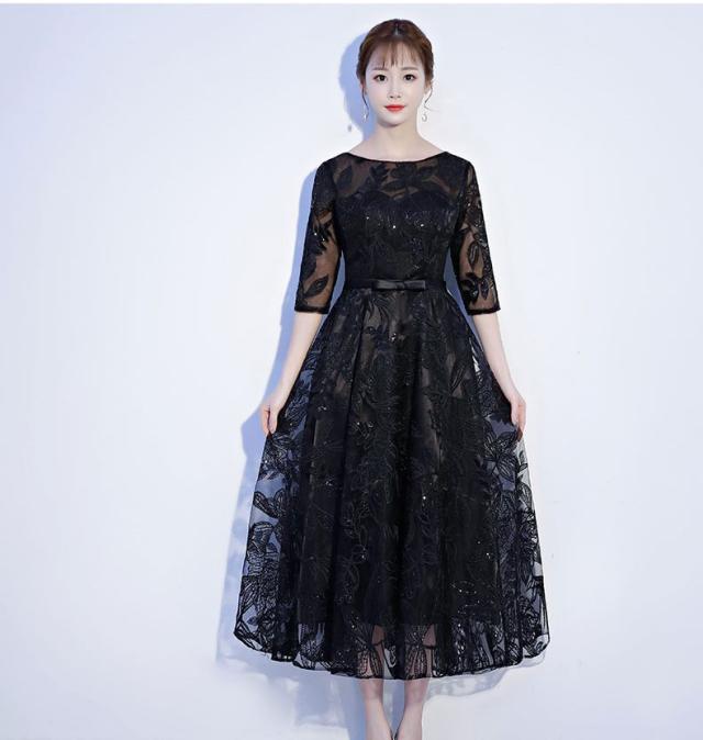 ビーズ刺繍 レース チュール 膝下 リボン 七分丈 ロングワンピース パーティードレス 結婚式 二次会 披露宴 パーティー お呼ばれ 女子会 演奏会 コンサート 発表会 卒業式 謝恩会 キャバ 親族 デート ディナー 大きいサイズ 足長効果 体型カバー 20代 30代 2L 3L 4L 5L 6L 春 夏 秋 冬