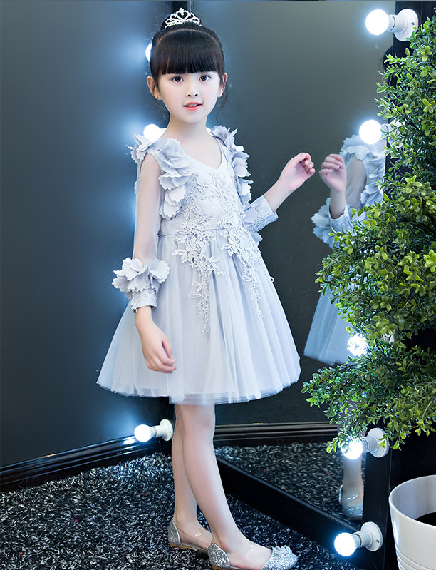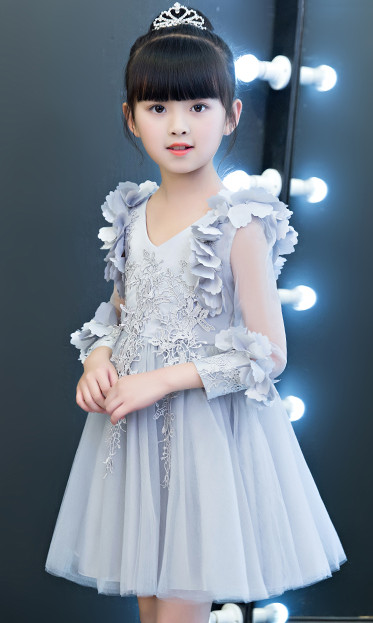 #ドレス #キッズ #女の子 #ピアノ演奏会 #誕生日 #グレー