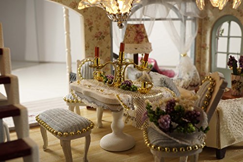 -. Feature : All furniture and things shown in the pictures are included. Cover is included. / Color Instruction.Each steps has pictures to show you how to assemble. / DIY house is the miniature of real house, All the materials are almost the same as real house so cute and beautiful / 1:24 scale, Finished Product Size:12.6*9.4*8 inch / It's very romantic to send it to friends, lover, family, kids... Means more to make it by yourself!