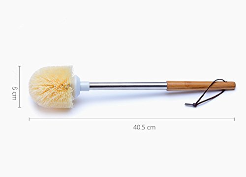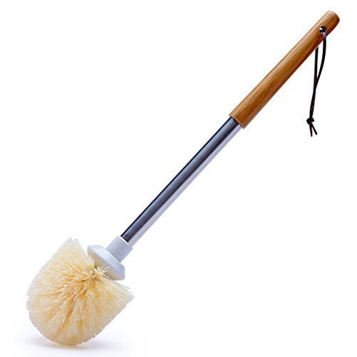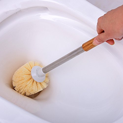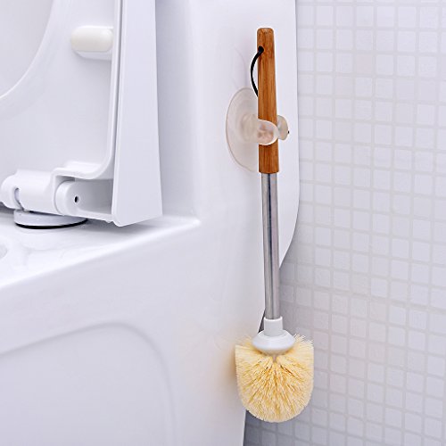 HUIBOT Toilet Brush Stainless Steel with Long Handle Strong Dense Bristles Bamboo Bathroom Cleaner