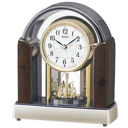 -. Feature : 本体サイズ:28.8×25×12.6cm / 素材・材質:プラスチック枠(濃茶マーブル模様光沢仕上げ)、前面:ガラス / 原産国:タイ / ムーブメント:電波修正機能(40kHz/60kHz自動選局・受信OFF機能つき) / 付属品:単3(アルカリ)×5(電池寿命約1年間) / 正時16曲メロディ、光センサーによる自動鳴止め / 音量調節、報時モニター機能 / 一方向回転飾り、スイープセコンド