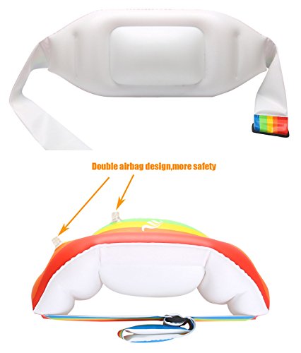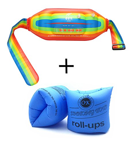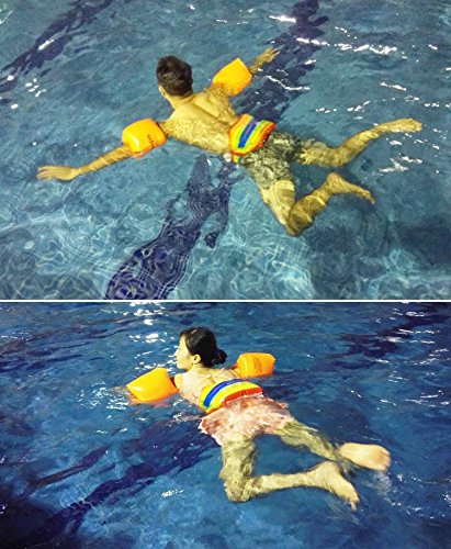 Double airbag design,more safety,more comfortable and more buoyancy for floating.you can use Swim Belts and Arm Bands Sleeves separate or use two products together,the buoyancy of Swim belts up to 150 pounds and 150 pounds for Arm Bands Sleeves, total up to 300 pounds.