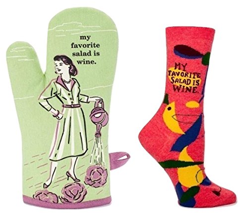 My Favorite Salad is Wine BlueQ Oven Mitt and Women's Crew Sock Gift Set Bundle