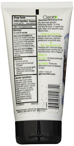 The Garnier SkinActive Clean+ charcoal blackhead acne treatment scrub with Salicylic Acid deeply cleanses, tightens pores and smoothes skin. This face wash infused with charcoal draws out blackhead-causing dirt, oil and impurities like a magnet. After just one use, this acne cleanser and detoxifying scrub leaves your skin with a matte and natural finish. After one week, this charcoal face wash diminishes pores and leaves your complexion clear. This facial scrub is suitable for all skin types, especially oily skin. To look and feel its best, oily skin needs the right deep pore cleansing routine. Our gel detoxifying face scrub made with microbeads and salicylic acid acne treatment is gentle, yet effective. Best if used with Garnier SkinActive Clean+ Charcoal cleansing products.