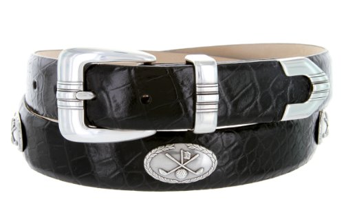 Binding : Apparel Product Description Stand out on the course with this handsome Men's golf belt. Constructed from high quality Italian Calfskin, lined with supple genuine leather on the back. This belt features an eye catching 4-piece designer buckle set, finished in antique silver. Matching golf concho ornaments complete the sport yet dressy look. Available in a wide range of strap styles and colors. 0