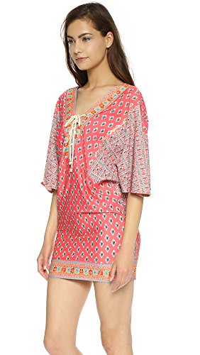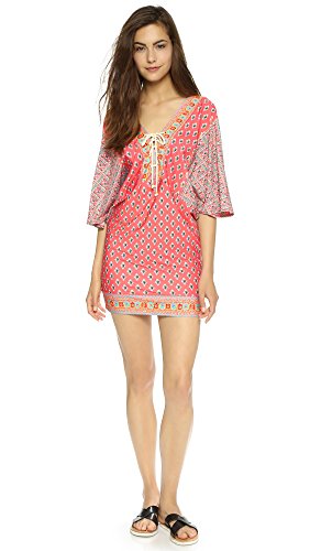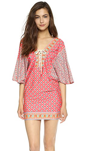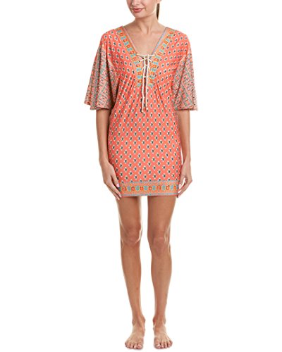 Product DescriptionA tapered profile accentuates the drape of a patterned Nanette Lepore cover-up tunic. Lace-up closure and deep V back. Slit, elbow-length sleeves.0