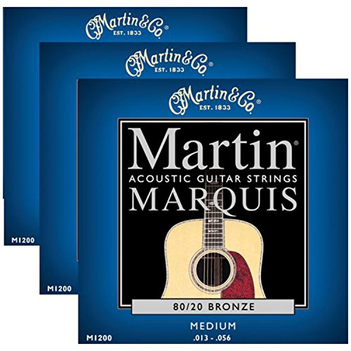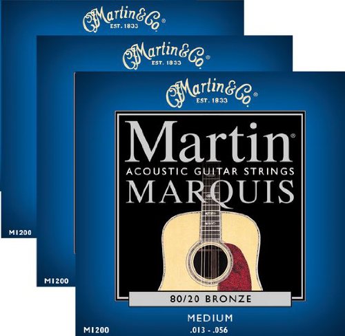 Product Description Martin M1200 Marquis 80/20 Bronze Medium Acoustic Guitar Strings offer a composition alloy for brilliance, clarity, and longevity of sound. The Phosphor Bronze winding is ideally suited for making guitar strings that have deep, rich basses and clear, bright trebles. 0