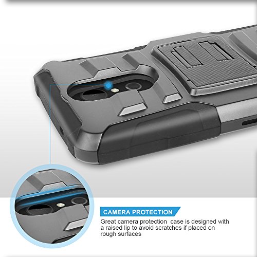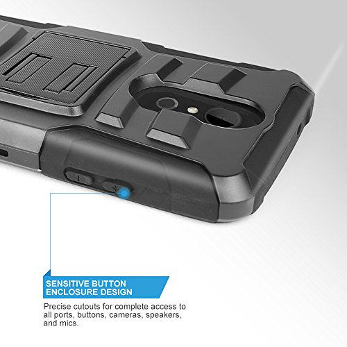 -. Feature : Perfect compatible with LG K20 Plus / K20 V / Harmony / The Multi-layer case provides shock absorbing protection, outer shell and a inner soft layer offers extra protection if dropped. This case has air protection & shock absorbing cushions in the corners of dropped or bumped, outer sheel has protective scratch coat to keep your case and phone looking like new. / 180° Holster clips to most straps comfortably, and the fold out/in kickstand which is easy to use convenient for comfortable video watching and messaging. The case provides unobstructed access to power and volume buttons. Precise cutouts allow complete access to all ports, buttons, cameras, speakers, and mics. / The case has an interior pattern panel that provide extra protection and absorb shock if falls or is dropped. The non-slip side strip in case is designed to provide with a comfortable secure grip every time. / The case also offers great camera protection with a raised lip to avoid scratches if placed on rough surfaces. Front raised lip gives added protection for the screen of your phone.