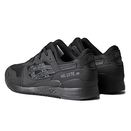 Studio : Asics Publisher : Asics Binding : Apparel Product Description Asics are always ahead when it comes to making perfect athletic shoes. The new black Gel Lyte III by Asics are no exception. These high quality, comfortable men's trainers have mesh uppers with leather overlays making these low-top sneakers highly fashionable with a monochromatic colourway all over. Lace up Asics trainers are built on top of a durable synthetic sole with Gel Cushioning System in the midsole for intense shock absorption. As like most other Asics footwear, the insole of Gel Kayano is also removable. If you are in search of durable and light weight running shoes, Gel Lyte III are a top choice. 0