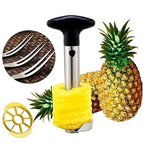 1.1 * Pineapple Slicer, 1 * Wedger DeviceEasy, 3 * Forks,Clean made of Stainless Steel and Plastic Handle.Easy to Clean made of Stainless Steel and Plastic Handle.
