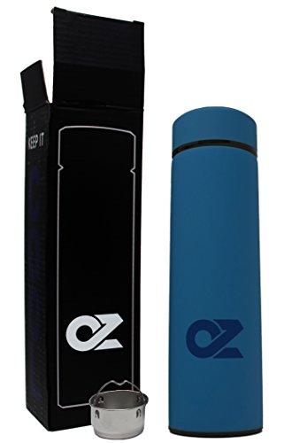 ALL IN ONE Travel Mug by OZ – 16.9 Oz Double Wall Metal Vacuum Thermos | Hot Tea, Coffee, or Cold Fruit Infuser Water Bottle