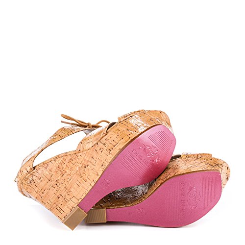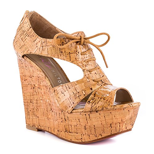 Studio : Paris Hilton Publisher : Paris Hilton Binding : Apparel Product Description It doesn't get much more versatile then the Aubrie! This Paris Hilton sandal features a glossy cork texture covering the style from top to bottom. An easy slip on gives credit to the lace up vamp and back zipper, while a 5 inch wedge and 2 inch platform deliver a lift. 0