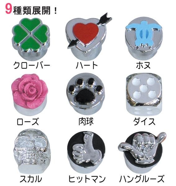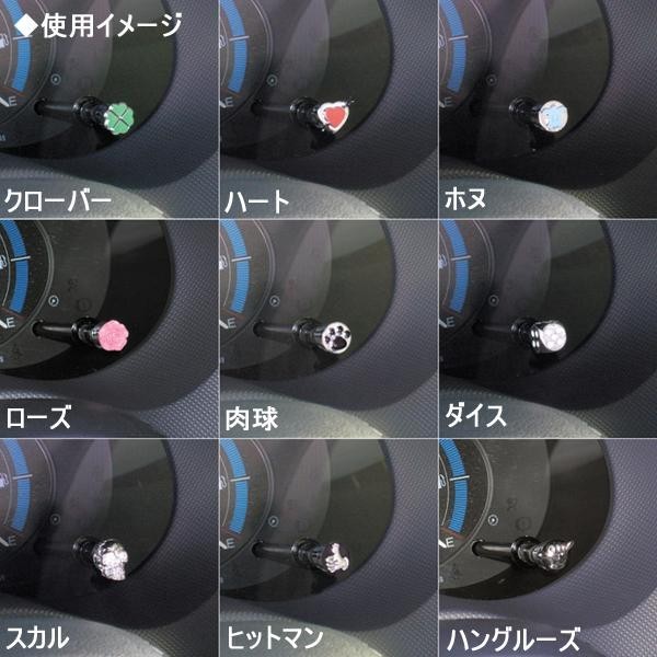 トリップメーターのプッシュボタンの先に取り付けるマスコットです。ボタンの先の直径がφ5~7mmに適合します(アダプター2種類付属)。