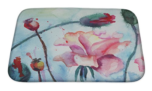 Gear New No Slip Microfiber Memory Foam Roses with Poppy Flowers Watercolor Painting Bath Rug Mat, 24" X 17"