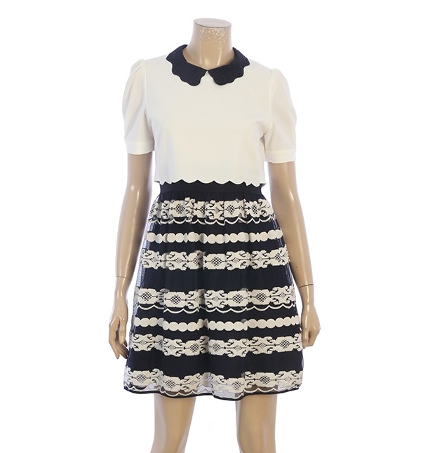 LINE, 패턴레이스와 물결배색카라가 어우러진 걸리시한 감각의 디자인입니다