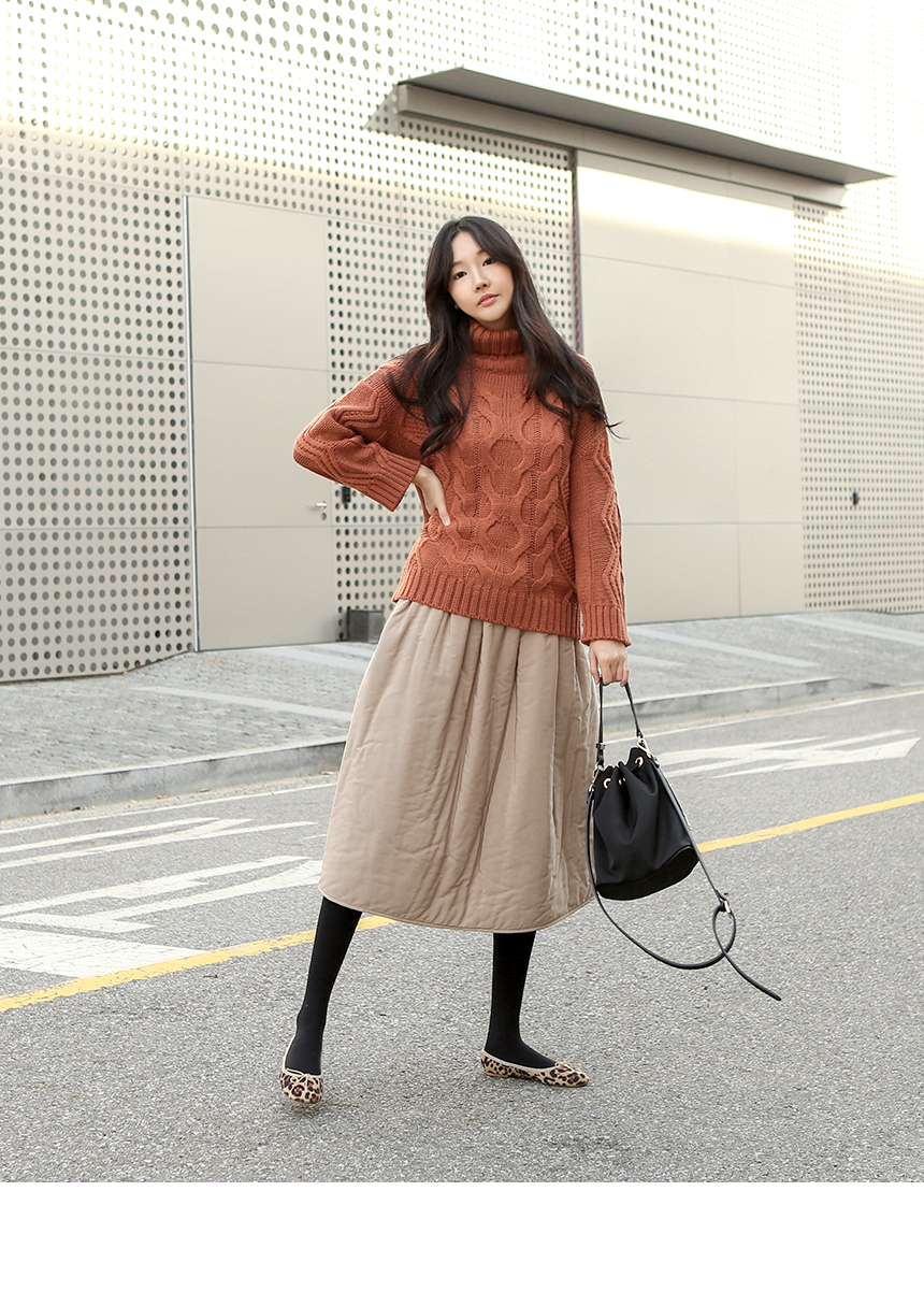 레트로 무드의 패딩 밴딩 풀스커트