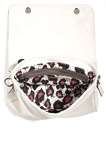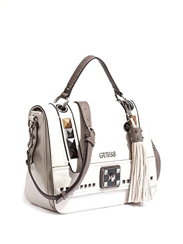 Details: Multicolor studs and a signature logo plaque make this bag a need-now essential. Pair it with work or casual attire to complete the look. Textured faux-leather exterior. Gunmetal-tone hardware. Front logo plaque. Stud and turnlock detail. Faux-suede tassel. Fold-over flap with snap closure. Interior zipper pocket, cell phone pocket, and two additional multi-purpose pockets. Single top handle with 4" drop. Optional cross-body strap with a 22.75" drop. 4-G logo print lining. 11.5"W x 9"H x 3.25"DStyle # VD423518Feature